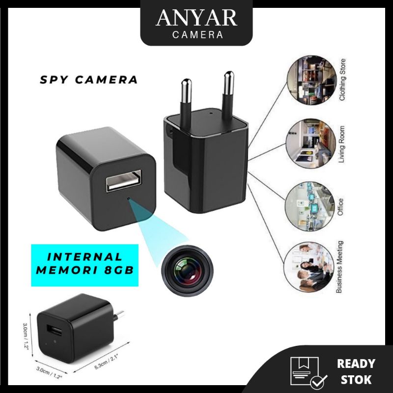 SPY CAM USB CHARGER ADAPTOR + MEMORY 8GB KAMERA PENGINTAI MINI HIDDEN CAMERA 1080 P FULL HD